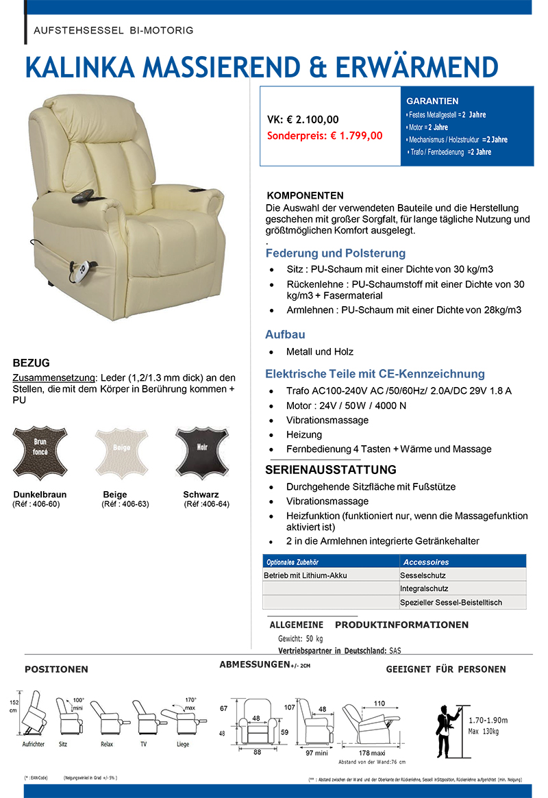 Auf Wunsch mit Aufbauservice, Anschluss der Sessel und Verpackungsrücknahme.